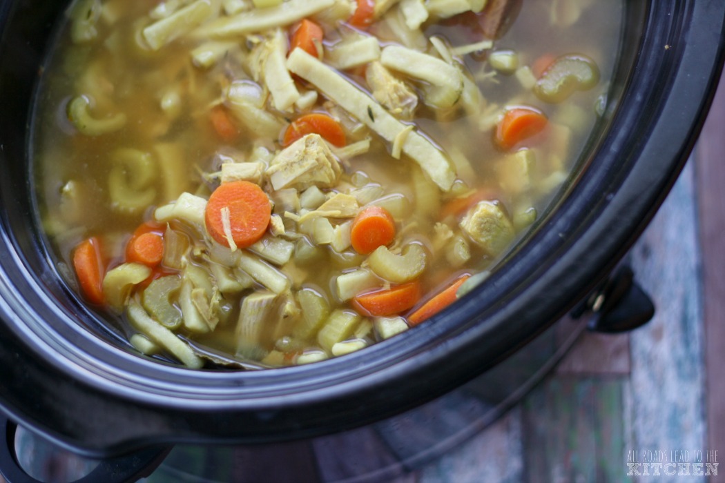 Turkey Noodle Soup: Use leftover turkey and freshly grated turmeric to make this simple, nourishing soup in the slow cooker.
