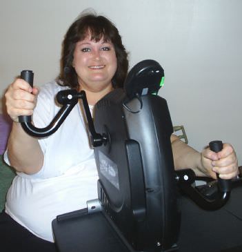 There are indeed other ways to get moving without therapy. The little gadget in the photo above (called an arm cycle or arm ergometer) can be used for arms or legs while sitting. When I had physical therapy, it was one of the machines they had me use to reap the benefits of cardio using only my arms. There are machines of various grades out there, so read the reviews. Some are cheaply made pedal machines, while others are made to give very intense aerobic workouts for people who are undergoing rehabilitation. It's a great way to get aerobic exercise without having to stand.
